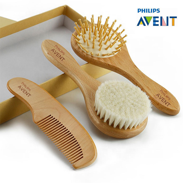 ست شانه و برس 3 تکه بیضی اونت Avent با الیاف طبیعی همراه جعبه