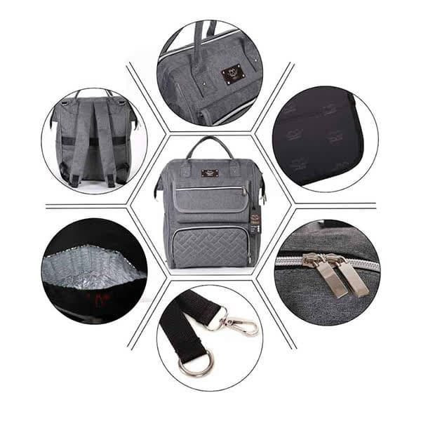اقلام همراه: کیف بهداشتی - کیف شیشه شیر - کیف پستانک - کیف بادی بگ - بند رودوشی - زیرانداز تعویض