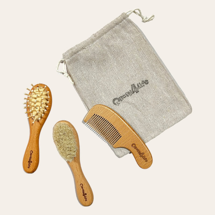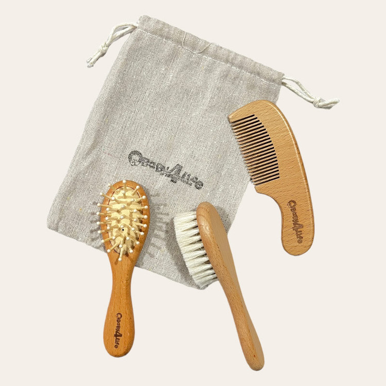 شانه و برس کودک چوبی بیبی فورلایف Baby4life، مناسب برای استفاده از زمان نوزادی.