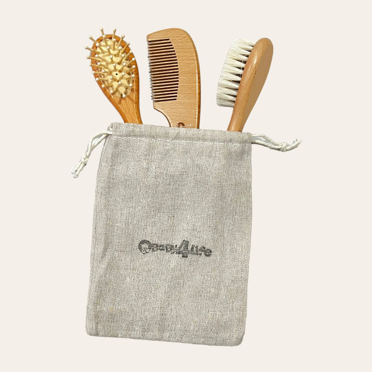 ست شانه و برس 3 تکه چوبی بیبی فور لایف baby4life همراه با بگ و جعبه