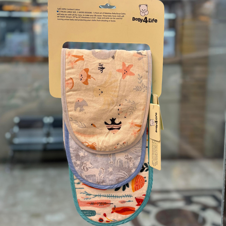 دستمال آروغ گیر بیبی فورلایف دور دوزی شده، زیبا و شکیل است.