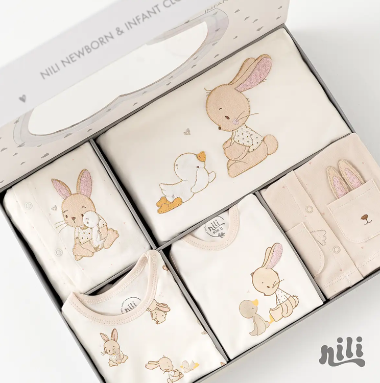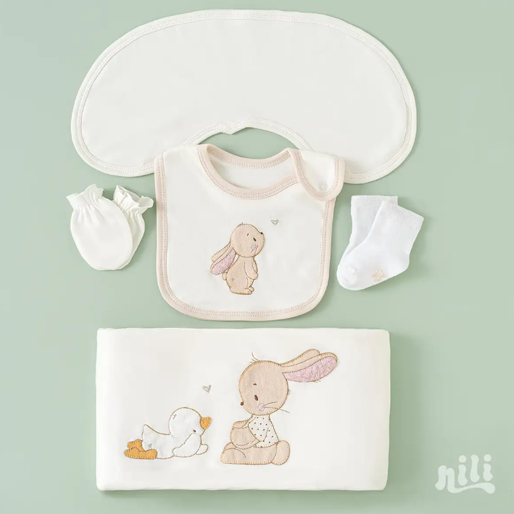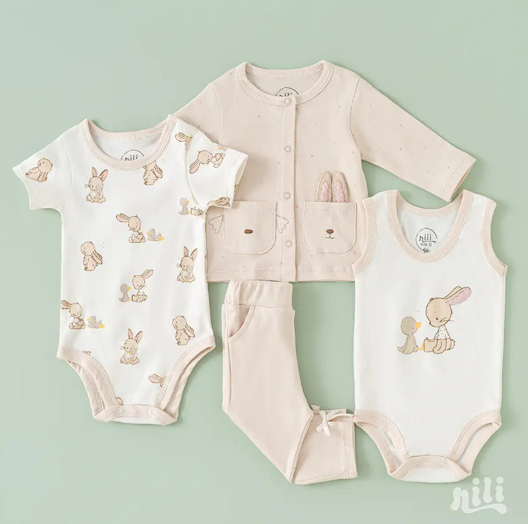 محتویات بسته: زیردکمه آستین کوتاه، زیردکمه رکابی، سرهمی جورابدار، مانتو، شلوار، پیشبند، کلاه گرد، یک جفت جوراب، یک جفت دستکش، آروغ گیر، دورپیچ نخی کلاه دار