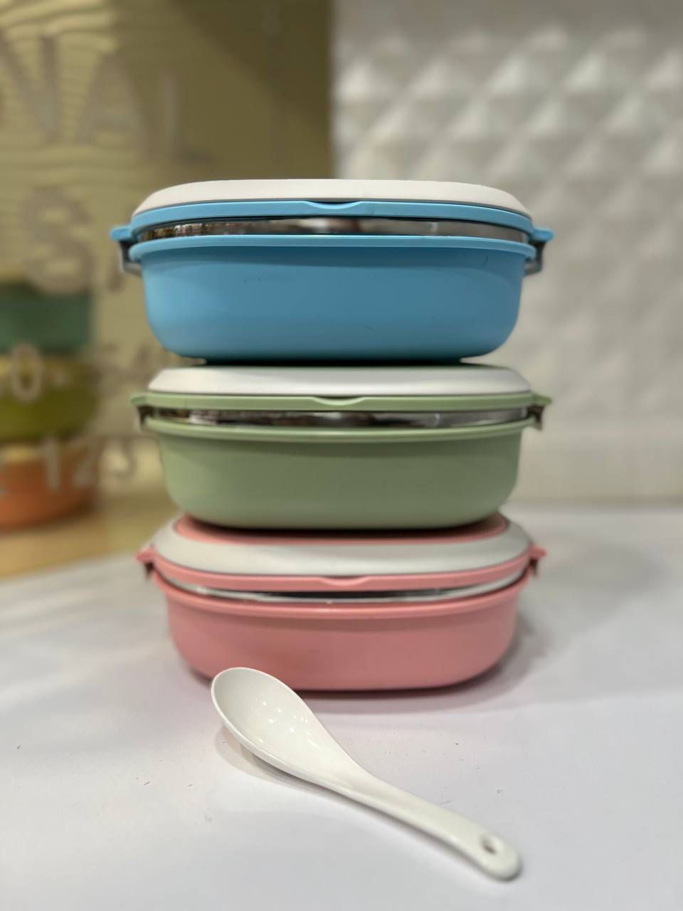ظرف غذاخوری استیل همراه با قاشق | لانچ باکس کودک