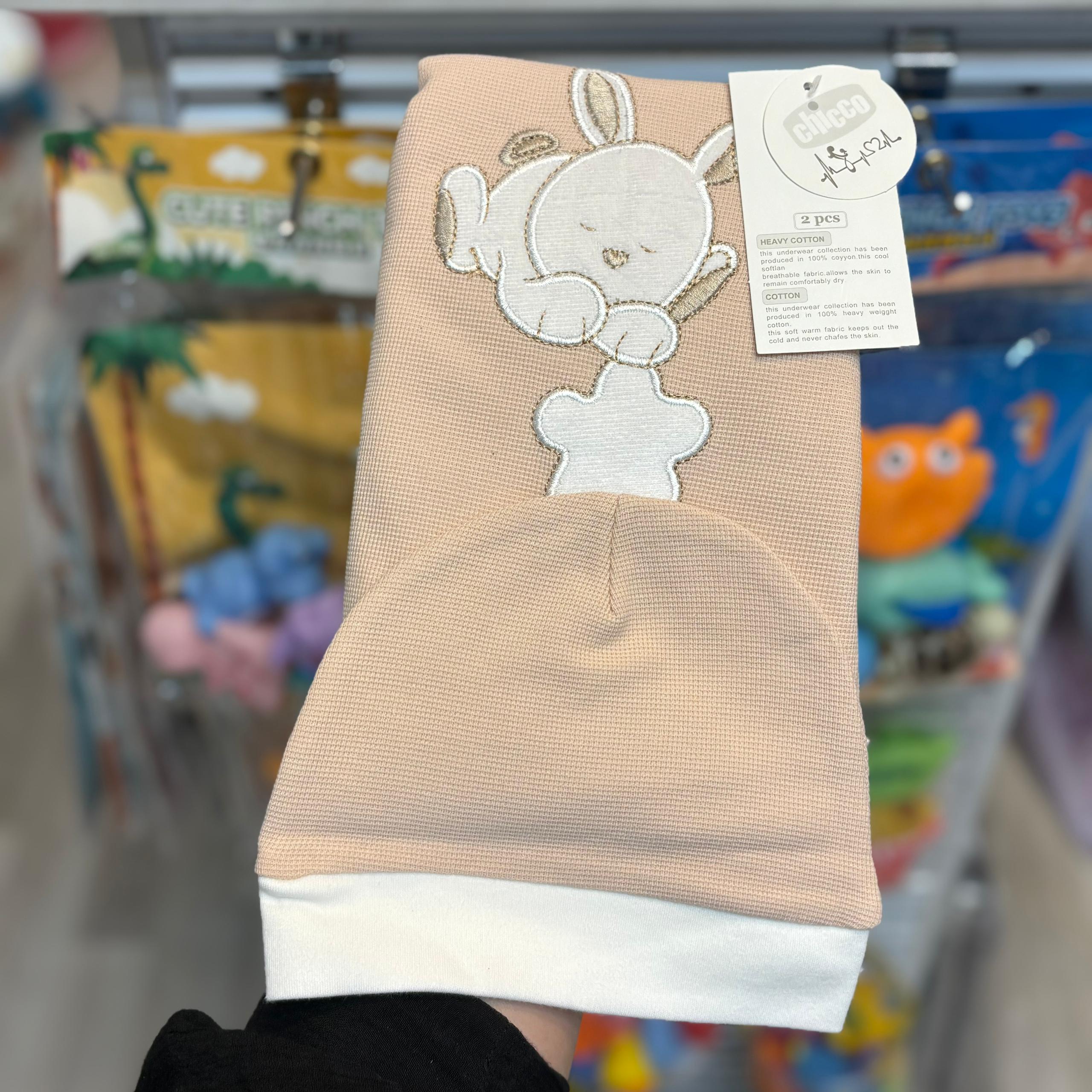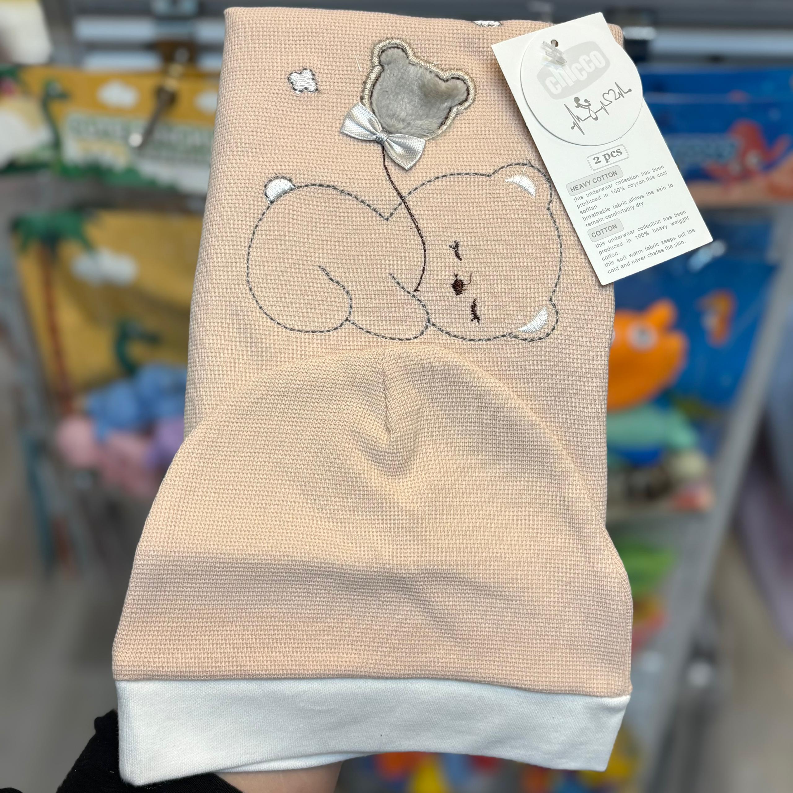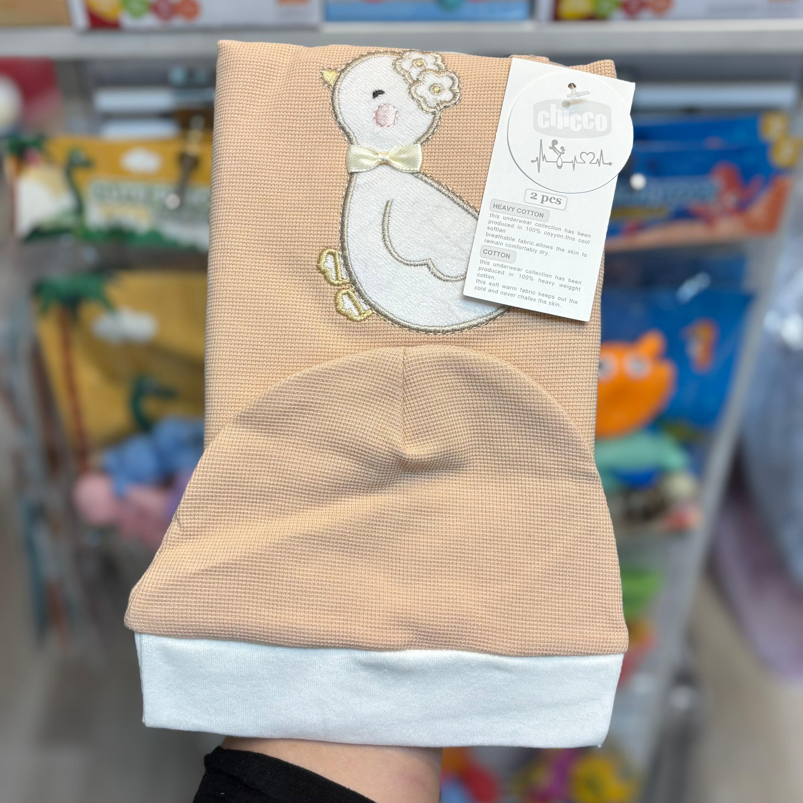 قنداق چسبی همراه با کلاه طرح برجسته چیکو chicco.m | قنداق نوزادی با کلاه ست