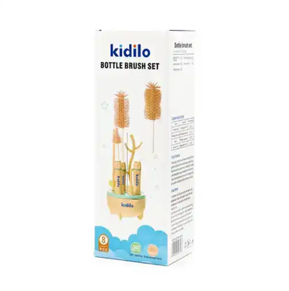 شیشه شور و آبچکان هشت تکه کیدیلو Kidilo رنگ کرم 8 تکه کرم رنگ دارای استند نگهدارنده و خشکن شیشه و پستانک دارای برس سیلیکونی به منظور جلوگیری از ایجاد خط و خش و کدر شدن شیشه شیر دارای یک برس سیلیکونی کوچک دسته دار مناسب شستشوی سرشیشه دارای یک عدد فرچه نی شور مناسب نی انواع لیوان آبمیوه خوره و … دارای 2 نوع شیشه شور سیلیکونی با دسته ی چرخشی و ثابت دارای برس سیلیکونی بدون نگرانی از خراب شدن فقد مواد مضر و سمی