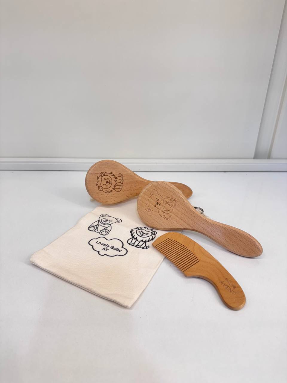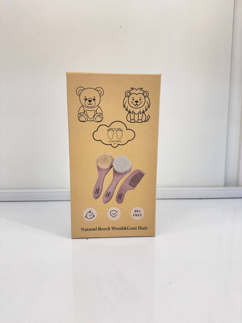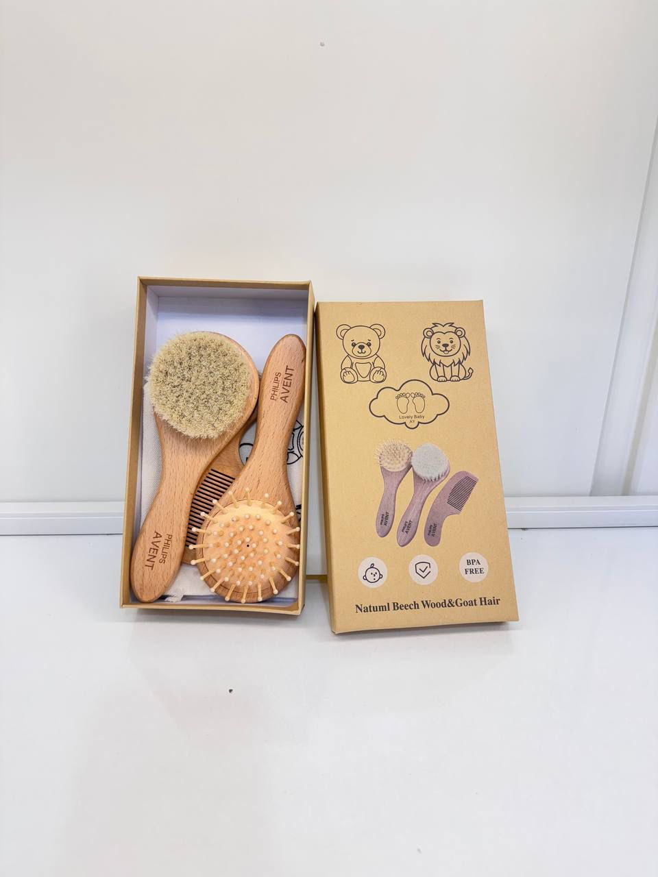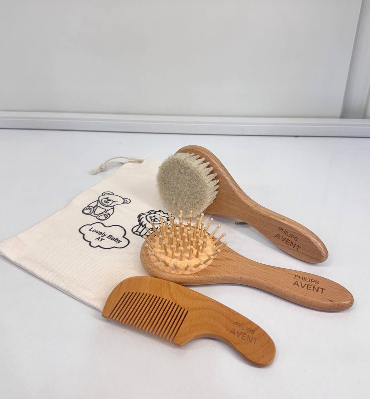 ست شانه و برس 3 تکه خرس و شیر اونت Avent با الیاف طبیعی همراه با جعبه