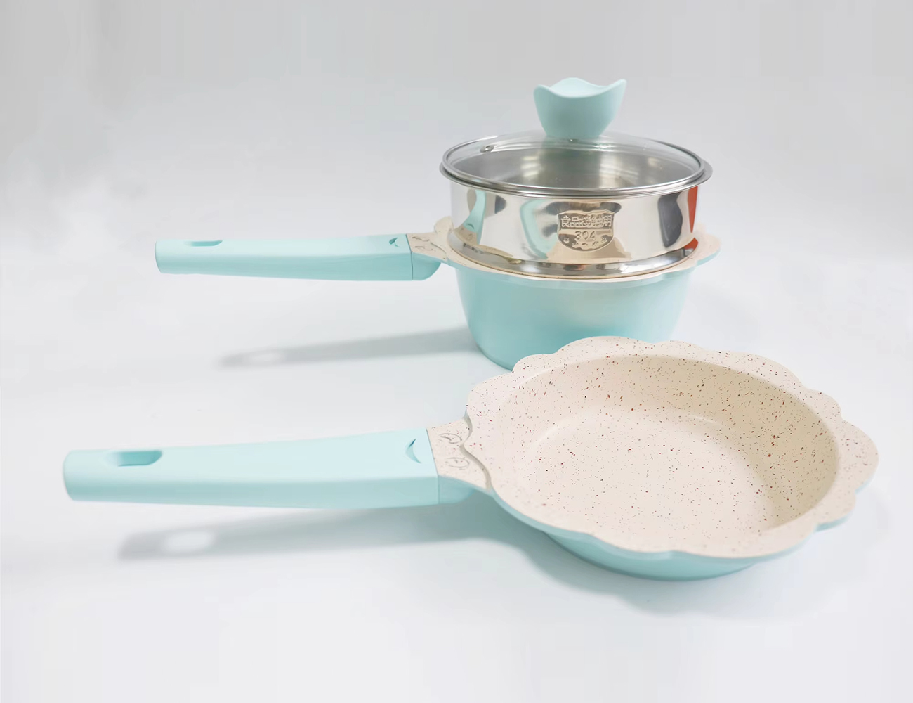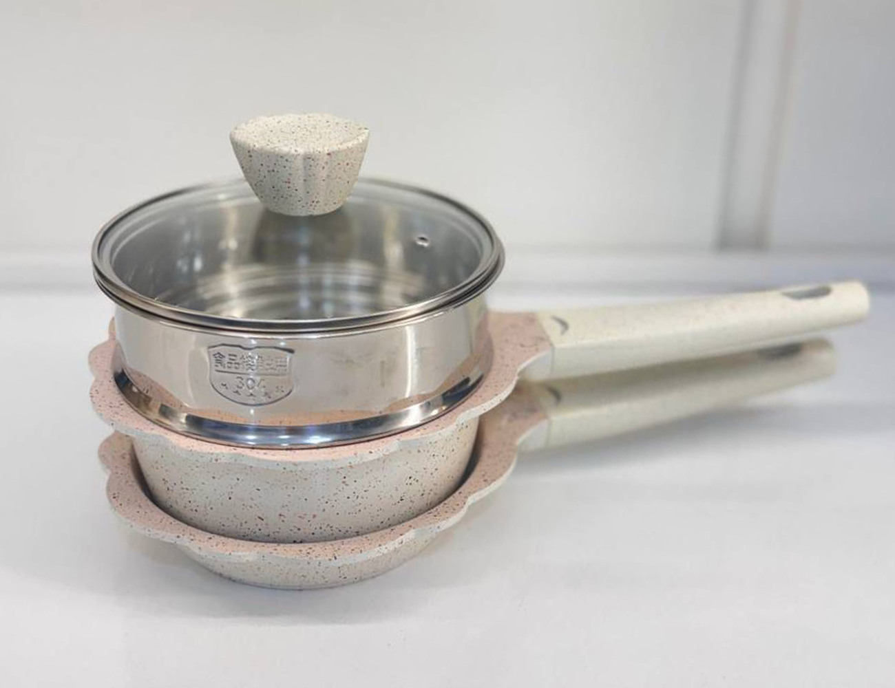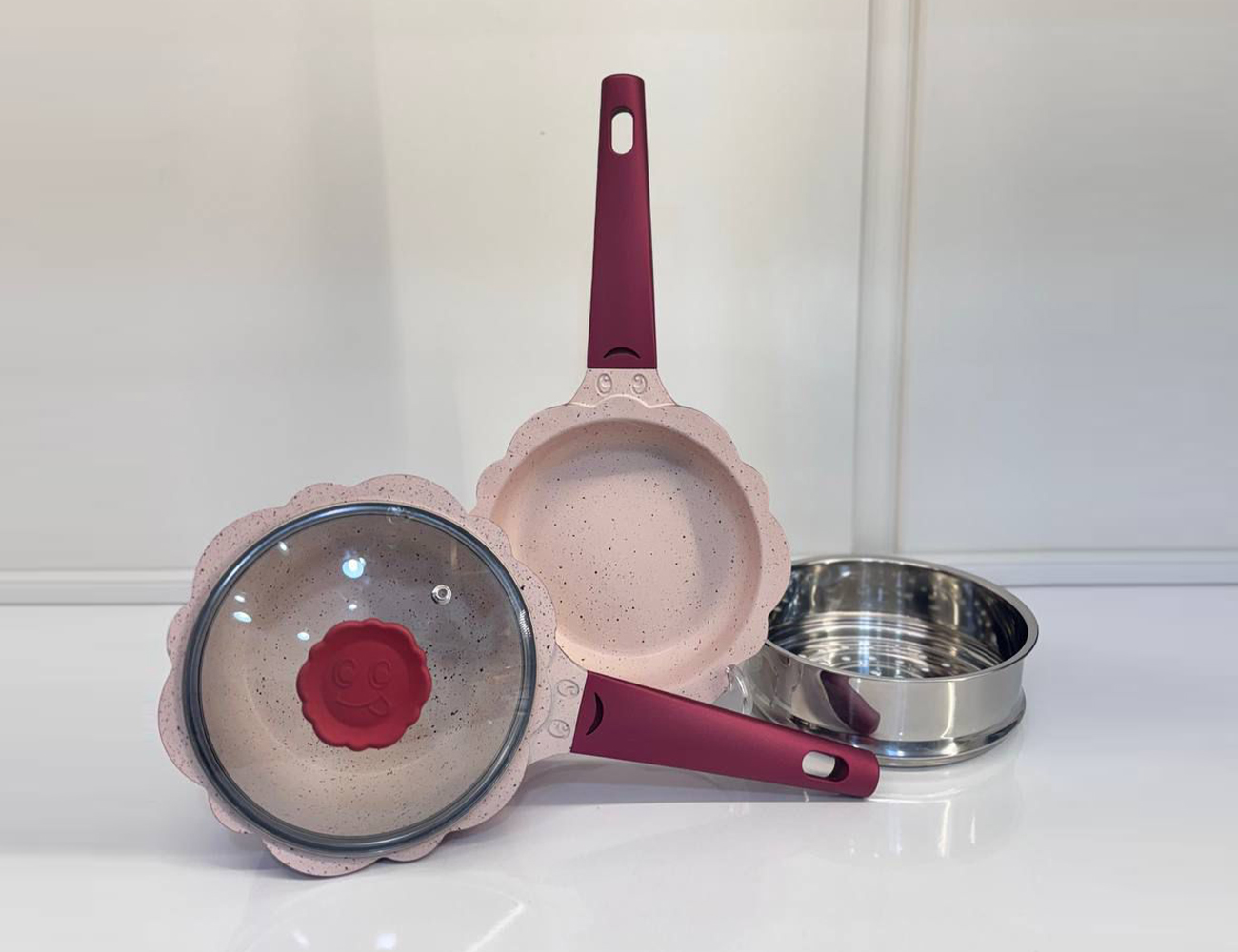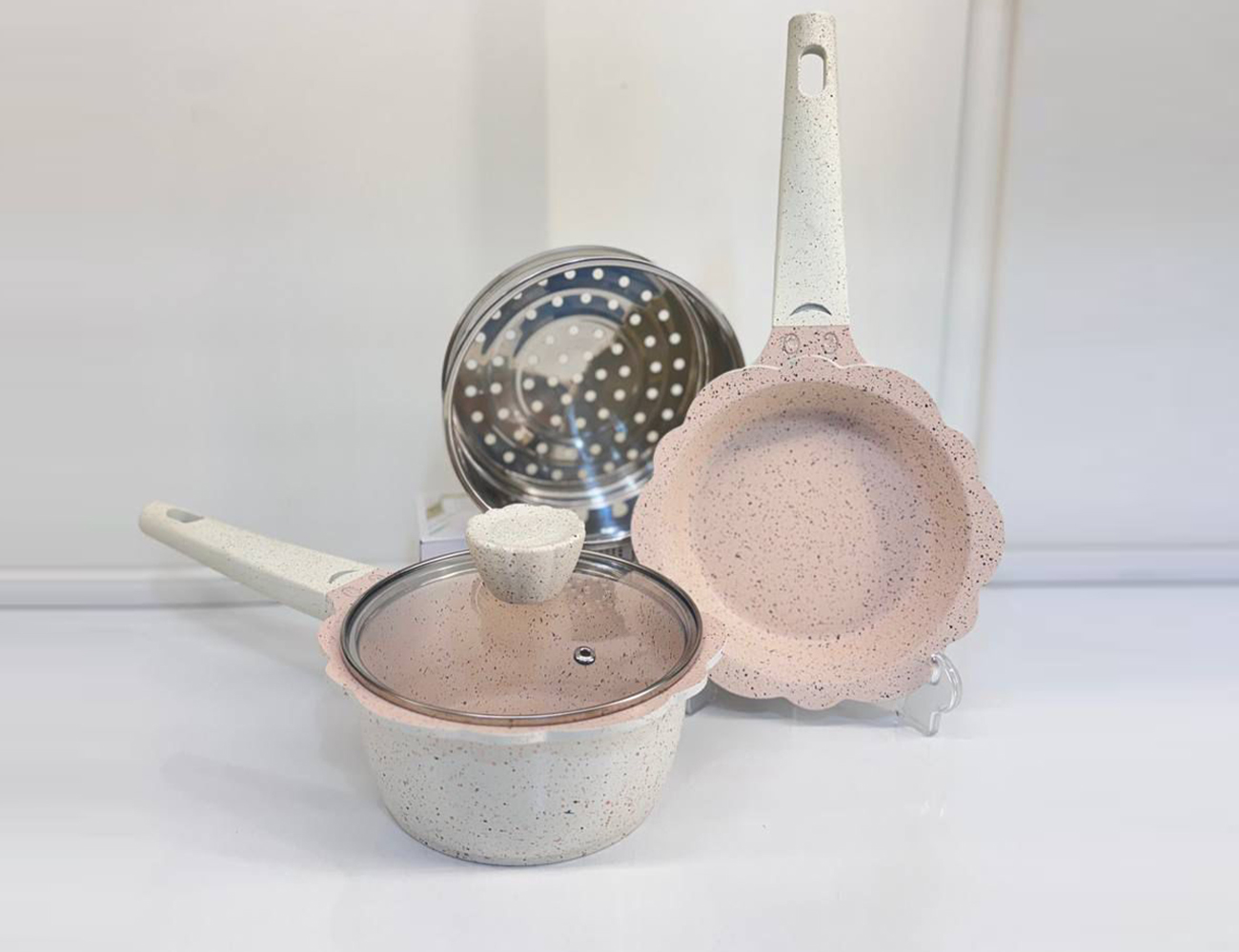 محتویات بسته : تابه - قابلمه - درب - بخارپز استیل
