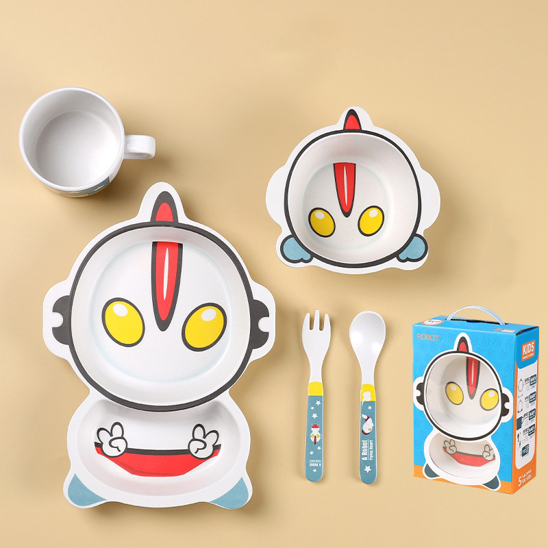 ست ظرف غذا بامبو 5 تکه کودک طرح آدم فضایی