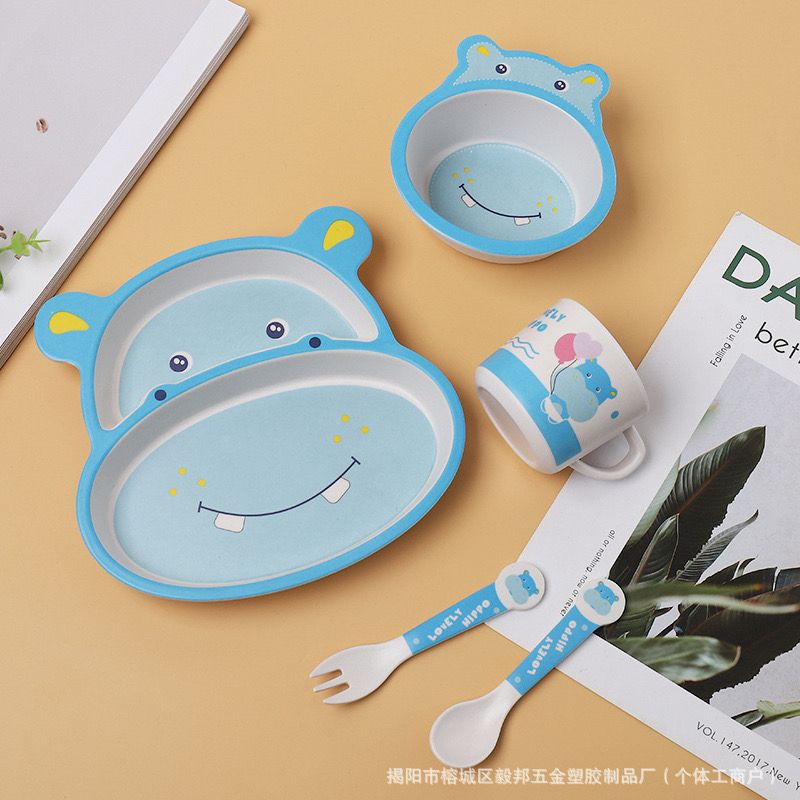 ست ظرف غذا بامبو 5 تکه کودک طرح اسب آبی