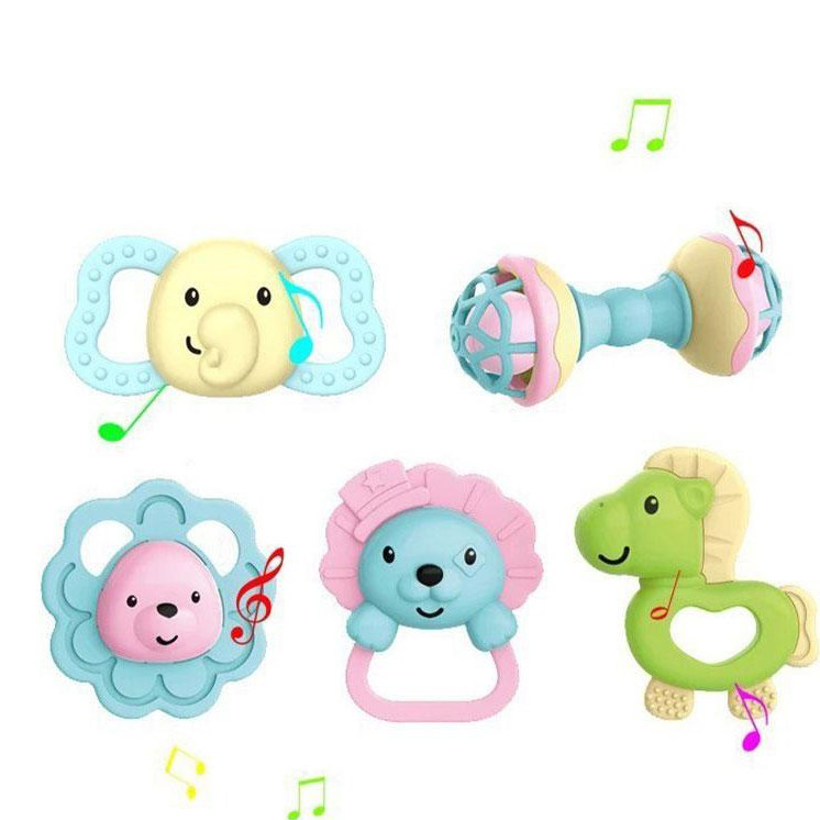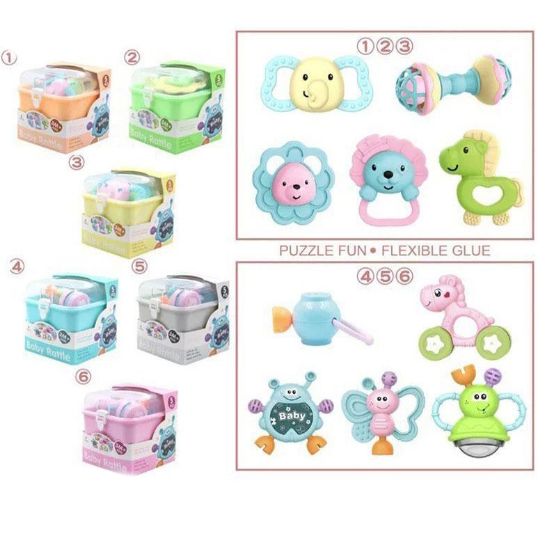 ست جغجغه و دندانگیر 5 عددی صندوقی Baby Rattle