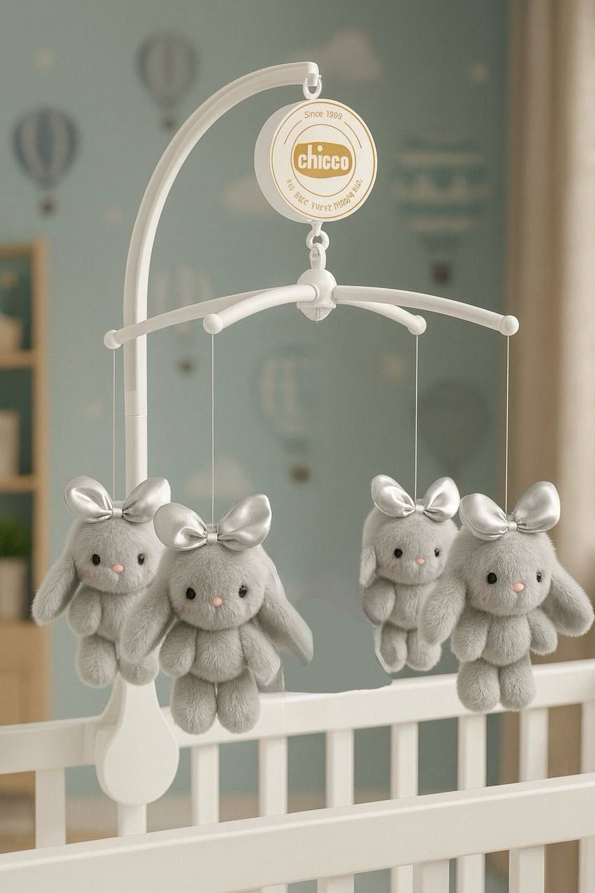 آویز تخت موزیکال طرح خرگوش پاپیونی طوسی چیکو Chicco