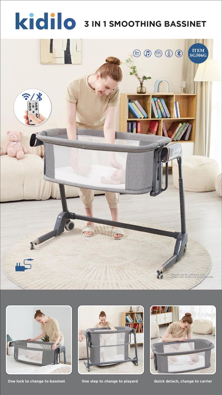 تخت و گهواره کنار مادر 3 کاره کیدیلو Kidilo کد SG506G رنگ طوسی