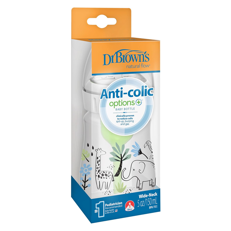 شیشه شیر طلقی پهن 150 میل آنتی کولیک و ضد نفخ 51008 طرح فیل و زرافه دکتر براون دکتر براونز Dr Brown's