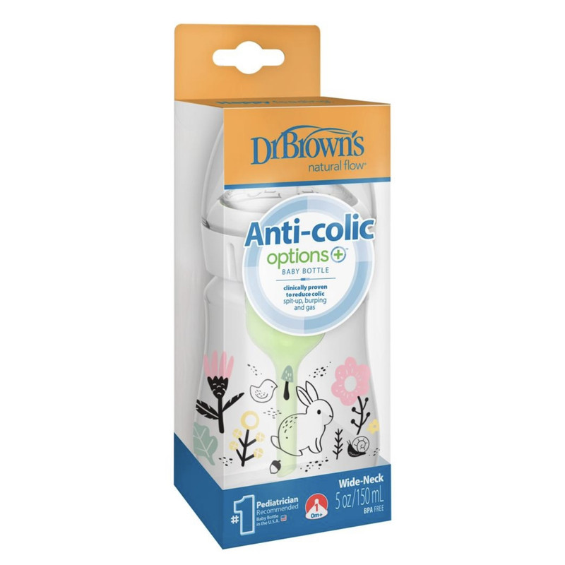 شیشه شیر طلقی پهن 150 میل آنتی کولیک و ضد نفخ 51009 طرح خرگوش دکتر براون دکتر براونز Dr Brown's