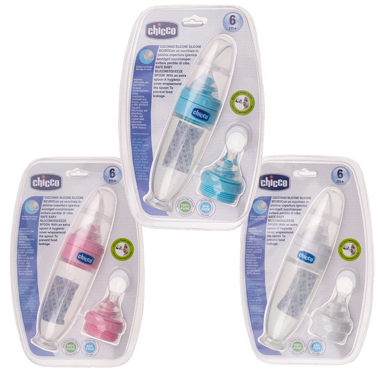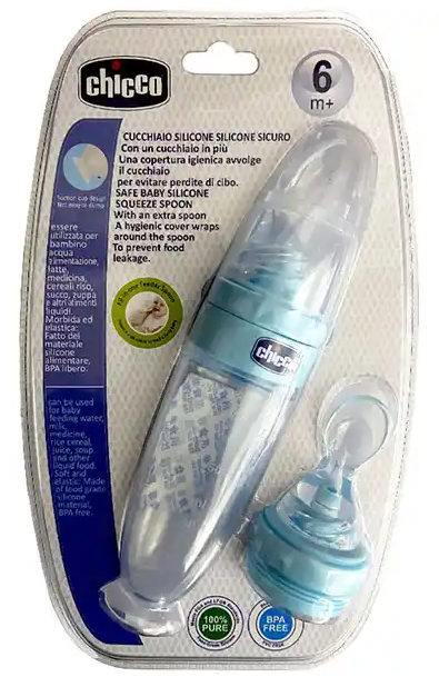 سرلاک خوری قاشق دار سیلیکونی چیکو Chicco در رنگبندی زیبا و شکیل.