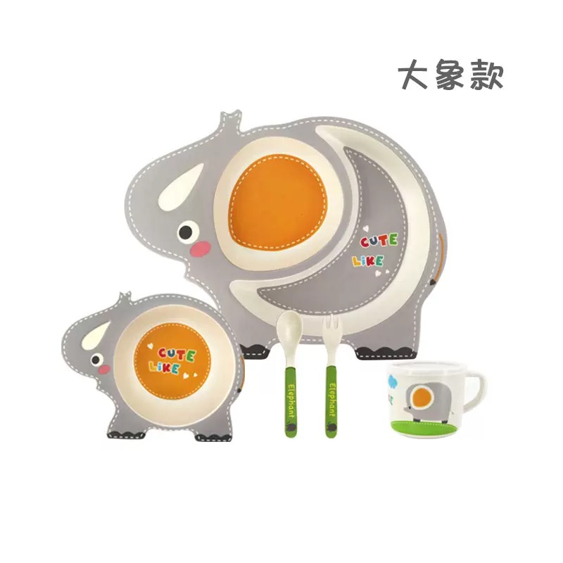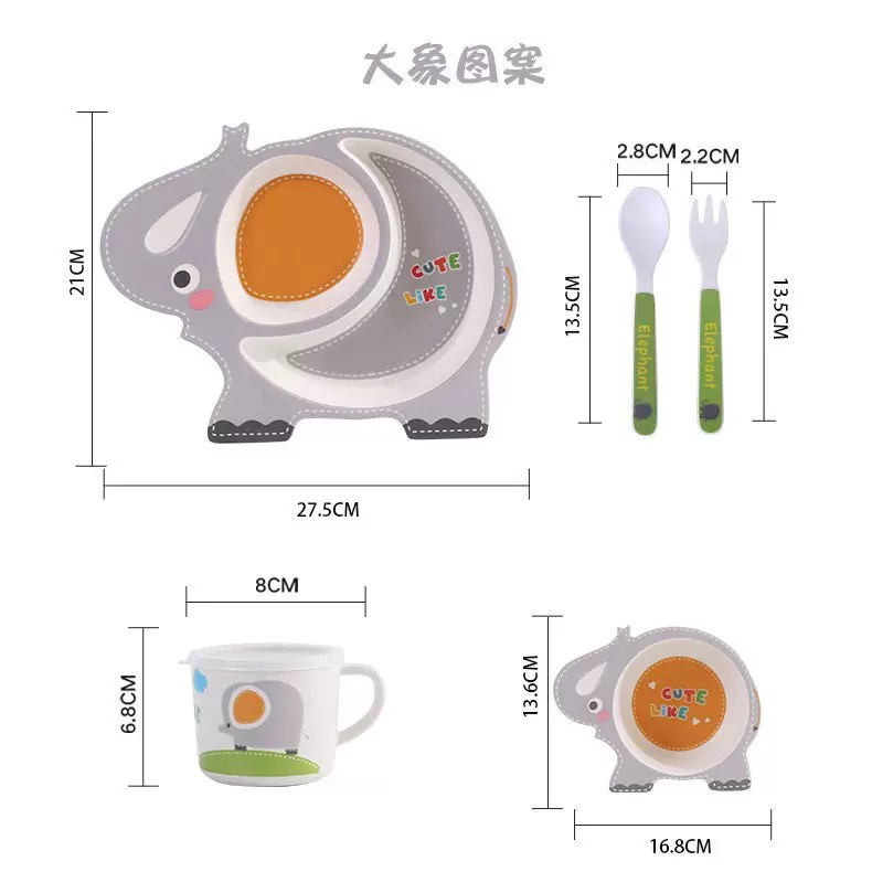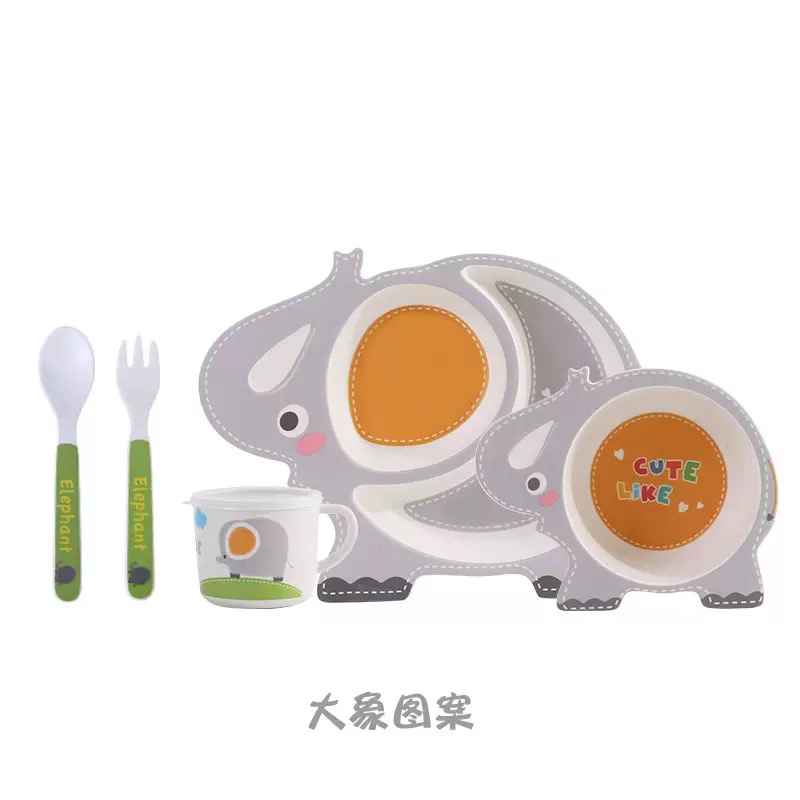 ست ظرف غذا بامبو 5 تکه کودک طرح فیل