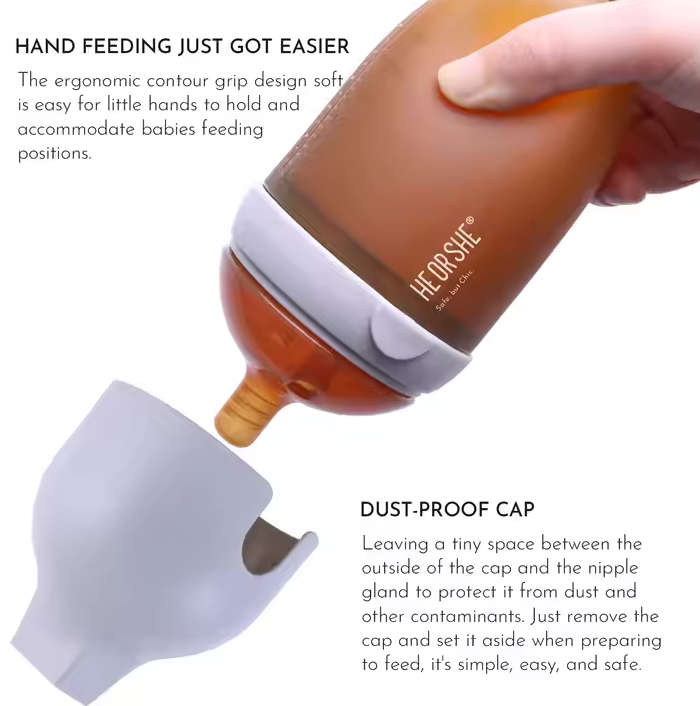 از هوشمندی های ویژه ی شیشه شیرهای هی اور شی، داشتن یک درب مخصوص است؛ این درب طوری تعبیه شده که با سرشیشه برخوردی نمی کند.