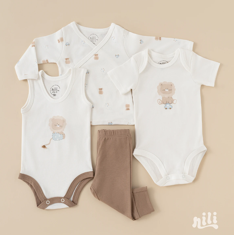 جنس: 100% نخ پنبه - ضد حساسیت - تمام کار های گلدوزی شده داخل لباس کاور نخی داره و بدن کودک رو اذیت نمیکنه
