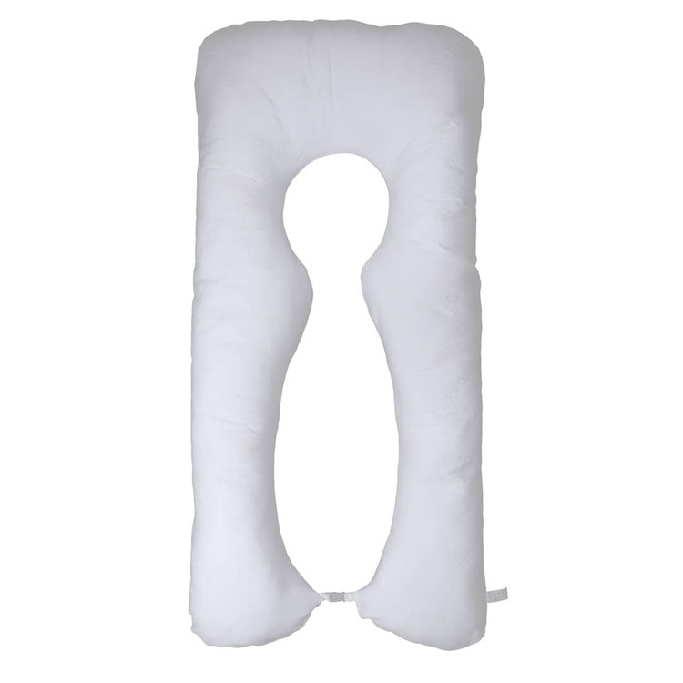 بالش یو شکل دی روحه یک بالش بزرگ است که از سر تا پا را حمایت می کند و مادر باردار را در بهترین وضعیت خواب قرار می دهد و فشار شکم به ستون مهره ها را کاهش می دهد. در آغوش گرفتن بالش از تغییر فرم شانه ها جلوگیری کرده و خستگی شانه ها و گردن را کم می کند. قرار گرفتن بالش در بین زانوها، لگن را در موقعیت مناسبی قرار می دهد و بهترین وضعیت گردش خون، بین قلب، کلیه ها و رحم را فراهم می کند. مدل یو شکل، کامل ترین مدلِ بالشهای بارداری است که پشت و جلوی بدن را به طور کامل حمایت میکند. روکش بالش از پارچه ای لطیف و مقاوم تهیه شده که قابل جدا شدن و شستشو است و اتصال روکش زیپ است. یکی از ویژگیهای منحصر به فرد بالشهای یو «دی روحه» این است که آستر این بالش نیز زیپ دارد و شما به الیاف داخل بالش دسترسی دارید و میتوانید پف بالش را کم یا زیاد کنید. قسمت پایین بالش یک اتصال وجود دارد با بستن آن، دیگر در نیمه های شب،بالش از زیر پا جدا نمی شود و آرامش بیشتری را به خوابتان می دهد. این بالش می تواند بعد از زایمان، در دوران شیردهی و یا برای کمک به نشستن نوزاد استفاده شود. این بالش به غیر از خانم های باردار، به هر کسی که به دلیل کمر درد یا دردهای دیگر، از خواب راحت محروم است، توصیه می شود.