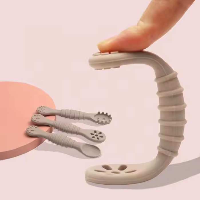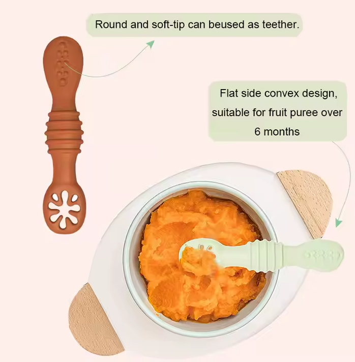 - دسته ارگونومیک: طراحی شده برای دستهای کوچک تا کودکان بتوانند به راحتی قاشق را در دست بگیرند.