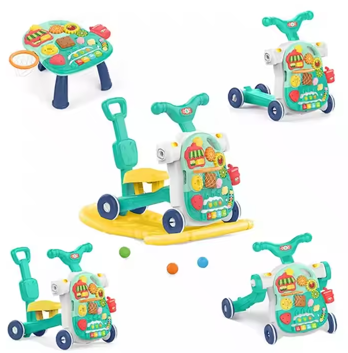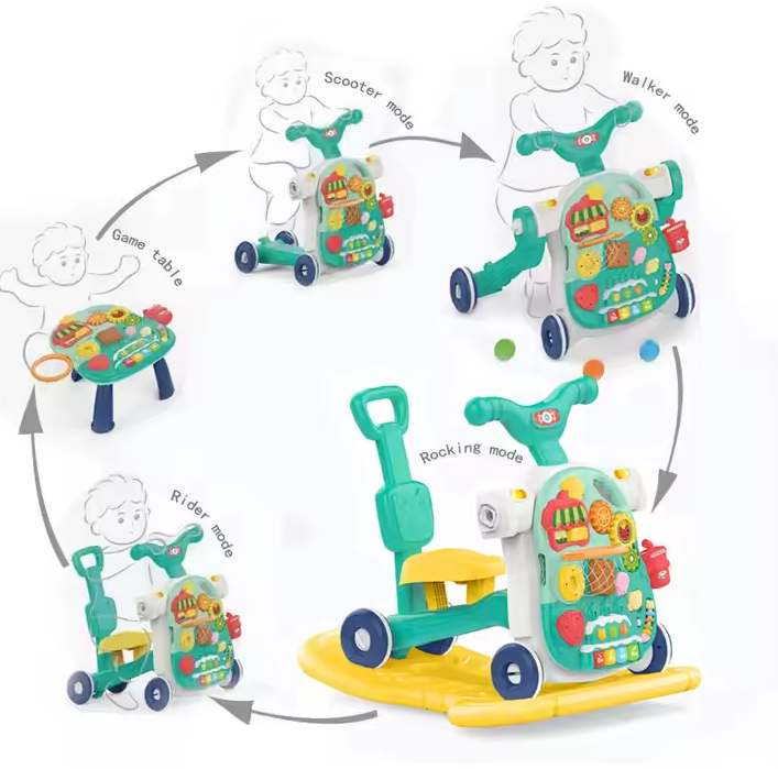 قابلیت تبدیل به : واکر، میز بازی، سه چرخه، اسکوتر، راکر، پنل گیم موزیکال