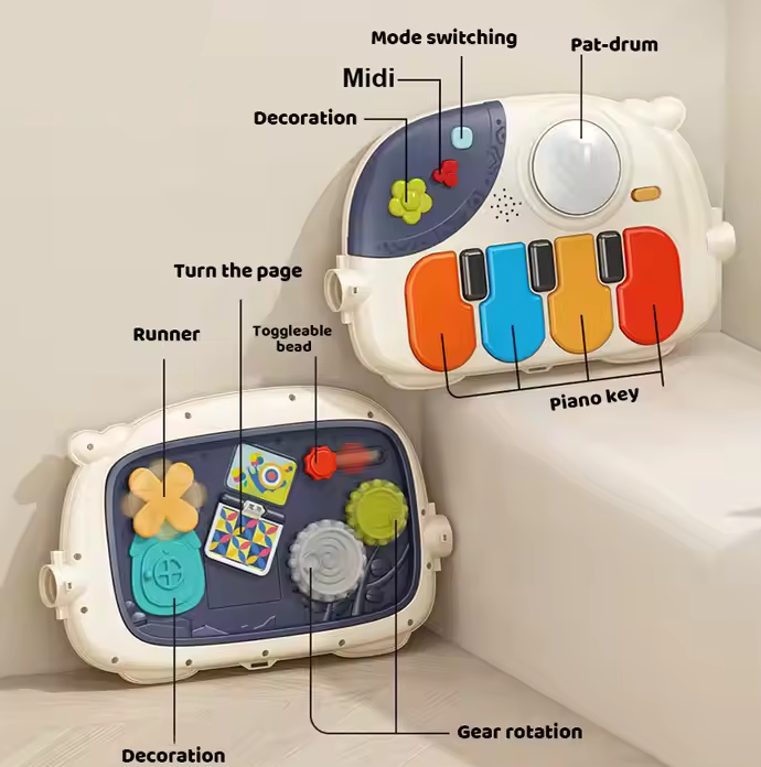 پنل پیانویی که در نوزادی به صورت خوابیده در زیر پا قرار میگیرد و در موقع نشستن حالت میز میشود و کودک نشسته با آن بازی میکند.