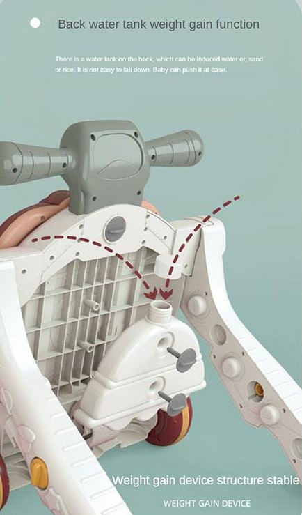 رده سنی: از 6 تا 36 ماه - دارای مخزن آب که با ریختن آب در آن واکر کمی سنگین تر شده و حین راه رفتن کودک چپ و یا لغزش ندارد