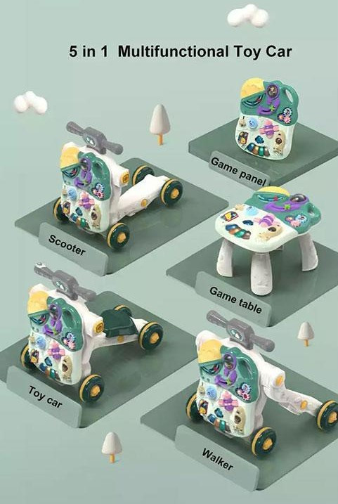 امکانات: قابل تبدیل به : واکر ، اسکوتر ، سه چرخه ، میز بازی ، پنل گیم موزیکال
