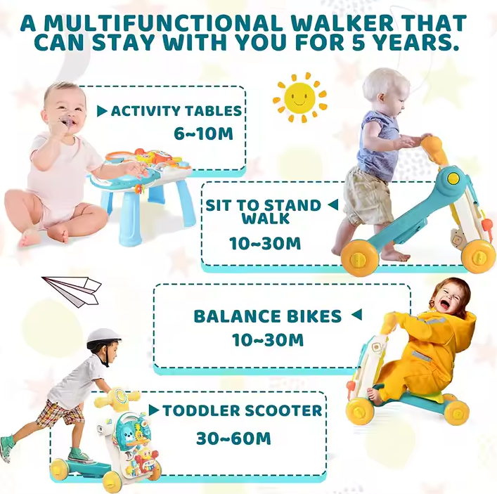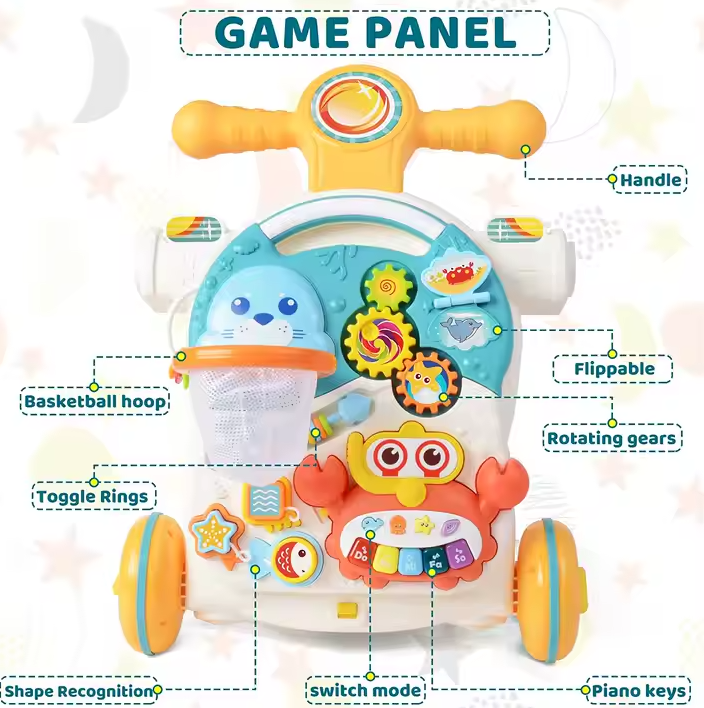 قابل تبدیل به : واکر ، اسکوتر ، میز بازی ، سه چرخه ، پنل گیم موزیکال