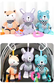 آویز عروسکی جغجغه ای کریر و کالسکه حیوانات در سه طرح متنوع مناسب برای نوزاد بالای سه ماه.