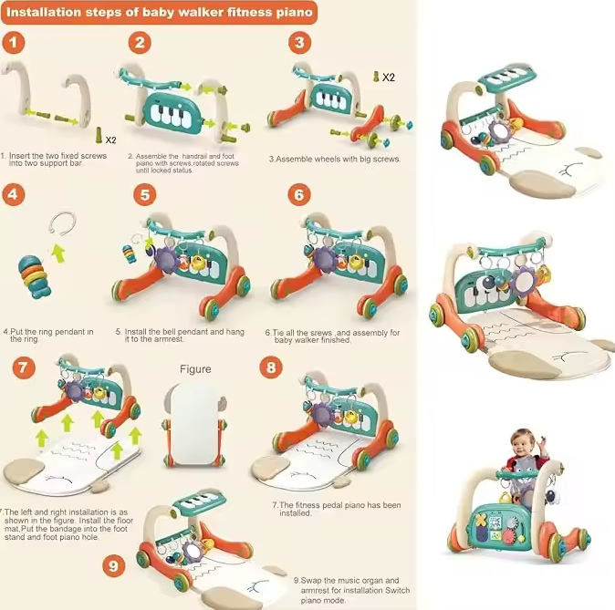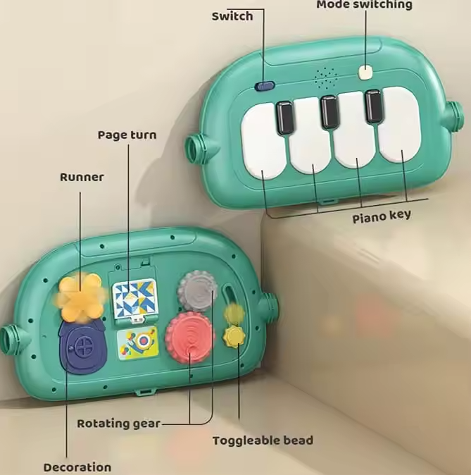 سایر توضیحات: دارای یک عدد پیانو - دارای تشک راحت و نرم - قابلیت تنظیم صدای موسیقی