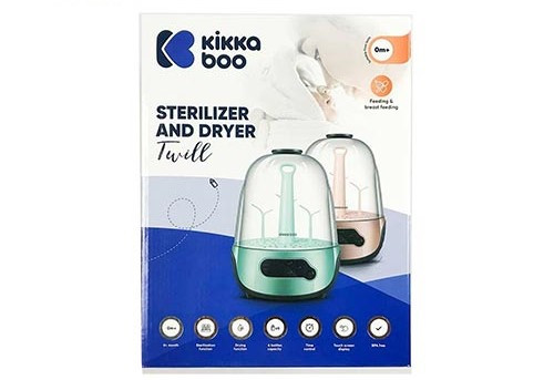 دستگاه استریل و خشک کن سبز Twill کیکابو یک دستگاه کاربردی و لازم برای وسایل سیسمونی نوزادان میباشد. این دستگاه گنجایش 6 عدد شیشه شیر را دارد و میتواند در مدت زمان 5 دقیقه لوازم کودک را استریل کند همچنین قابلیت خشک کردن وسایل را نیز دارد. این دستگاه قابلیت از بین بردن 99/9% میکروب ها و باکتری ها را دارد از این رو استفاده از دستگاه استریل برای وسایل تغذیه ای نوزاد امری مهم و ضروری است تا نوزادان را از بیماری ها محفوظ نگه دارد.