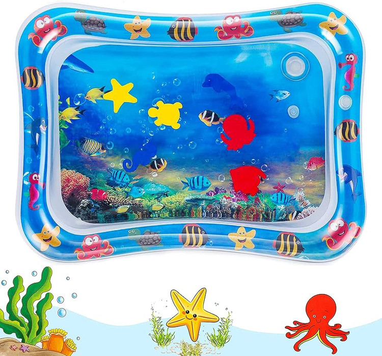 واتر مت یا تشک آبی یک محصول جدید هیجان انگیز برای نوزادان از بدو تولد تا 2 سالگی است. درون واتر مت کودک را میتوان آب سرد و یا گرم ریخت تا کودک ساعتها مشغول بازی و سرگرمی شوند. این واتر مت دارای طرح های مختلف از حیوانات دریایی است و درون این واتر مت مقداری عروسک فومی حیوانات دریایی قرار گرفته که با ریختن آب درون تشک آبی حیوانات فومی حرکت میکنند. این واتر مت از جنس پلاستیک با کیفیت است و دارای دو محفظه است که در یک قسمت هوا و در یک قسمت آب ریخته می شود. کافیست واتر مت کودک را با آب پر کنید و درون آن آب بریزید تا یک تشک آبی جذاب برای کودک خود داشته باشید. این واتر مت باعث تقویت عضلات دست و پای کودک میشود.