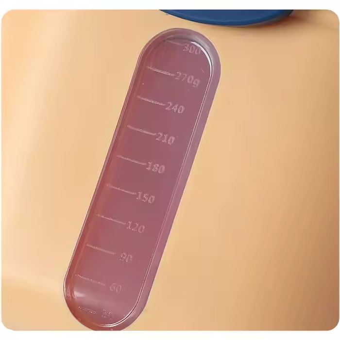 همراه یک پیمانه برای اندازه گیری شیر که روی درب میانی ظرف جای می گیرد.