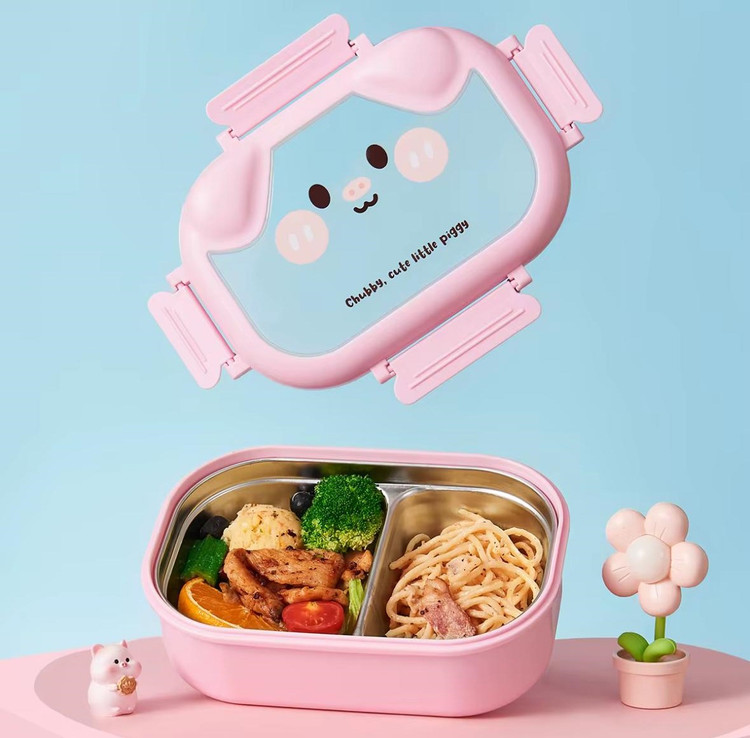 ظرف غذا و لانچ باکس استیل کودک اورجینال طرح خوک کد 6309