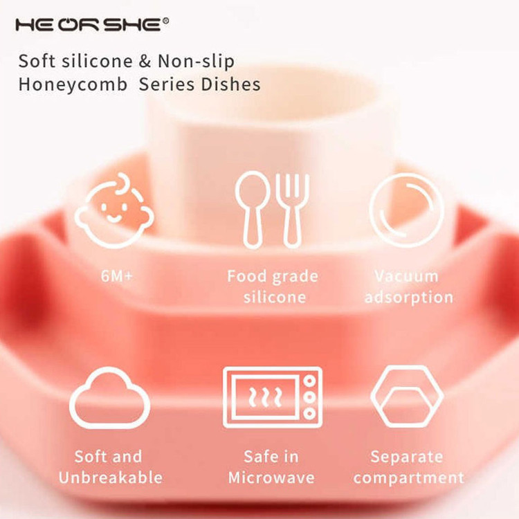 ظرف غذا هی اور شی HEORSHE شامل یک ظرف غذای دو بخشی بزرگ ، یک کاسه و یک لیوان مخصوص است . این مجموعه منحصر بهفرد در یک بسته مخصوص و زیبا قرار گرفته است. هر دو ظرف غذا دارای پایه چسبان است که باعث میشود این ظرف غذا، روی سطوح ثابت مانده و از ریخته شدن غذا جلوگیری میکند.