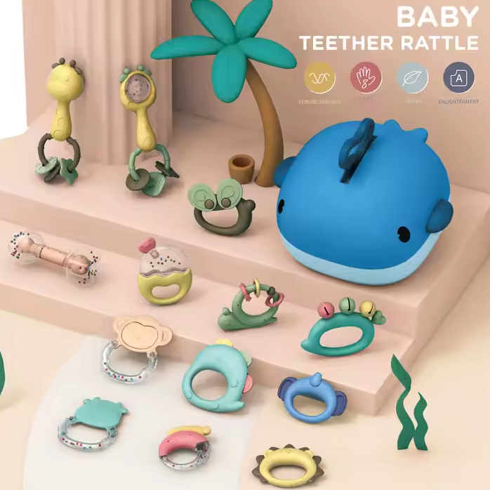 جغجغه صندوقی 13 تکه همراه با آبچکان مدل نهنگ