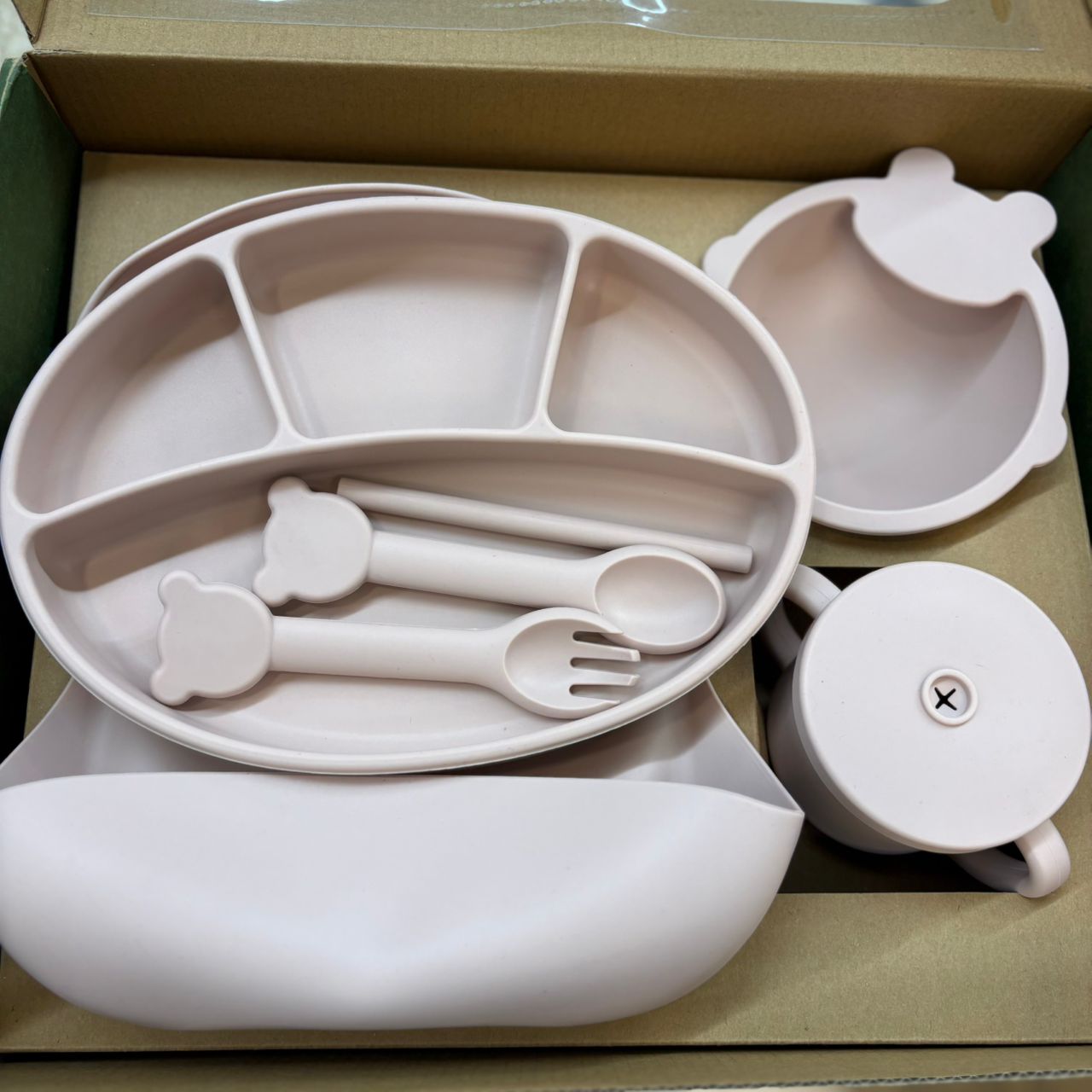 ست ظرف سیلیکونی 8 تکه خرسی بیضی در رنگبندی متنوع همراه با جعبه | ست سیلیکونی کودک