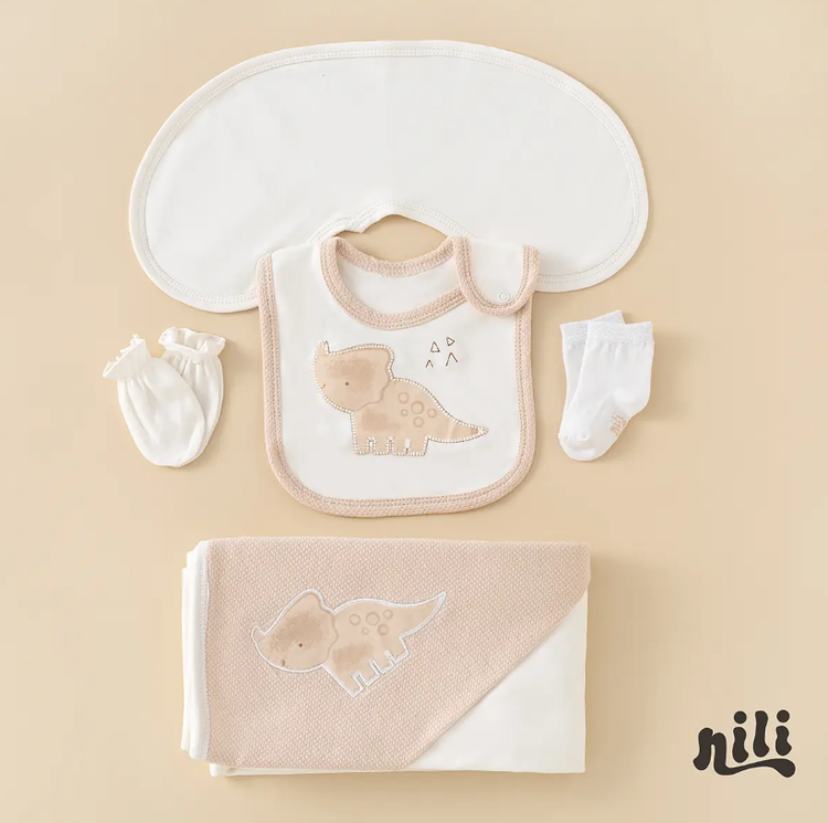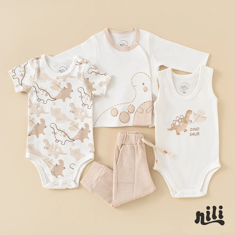 محتویات بسته: زیردکمه آستین کوتاه، زیردکمه رکابی، سرهمی جورابدار، مانتو، شلوار، پیشبند، کلاه گرد، یک جفت جوراب، یک جفت دستکش، آروغ گیر، دورپیچ نخی کلاه دار