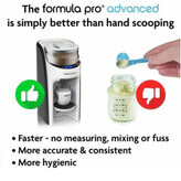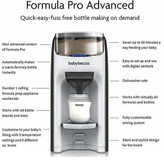 بهداشتی تر از آماده سازی دستی بطری است، زیرا فرمول از ظرف پودر دربسته توزیع می شود. Formula Pro Advanced شیشه شیر کودک شما را بدون اندازه گیری نامرتب، بدون مخلوط کردن و بدون انتظار برای رسیدن آب به دمای مناسب می سازد. به سادگی دستگاه را تنظیم کنید، سپس تنها چیزی که نیاز دارد فشار دادن یک دکمه برای ساخت بطری است. شما می توانید با انتخاب مقدار شیر خشک از 2 تا 10 اونس با افزایش 1 اونس، بطری مناسب را برای کودک خود سفارشی کنید. سپس یک انتخاب از 3 تنظیم دما (یا فقط توزیع آب) وجود دارد. تقریباً با تمام مارک های فرمول و همه مارک ها و اندازه های بطری کار می کند. راه اندازی ساده است. آب را به مخزن اضافه کنید، ظرف فرمول را پر کنید، از صفحه کنترل LCD برای تنظیم اندازه و دما استفاده کنید و آماده حرکت هستید. مخزن آب دارای دهانه بالایی برای پر شدن آسان است و همچنین برای تمیز کردن قابل جدا شدن است