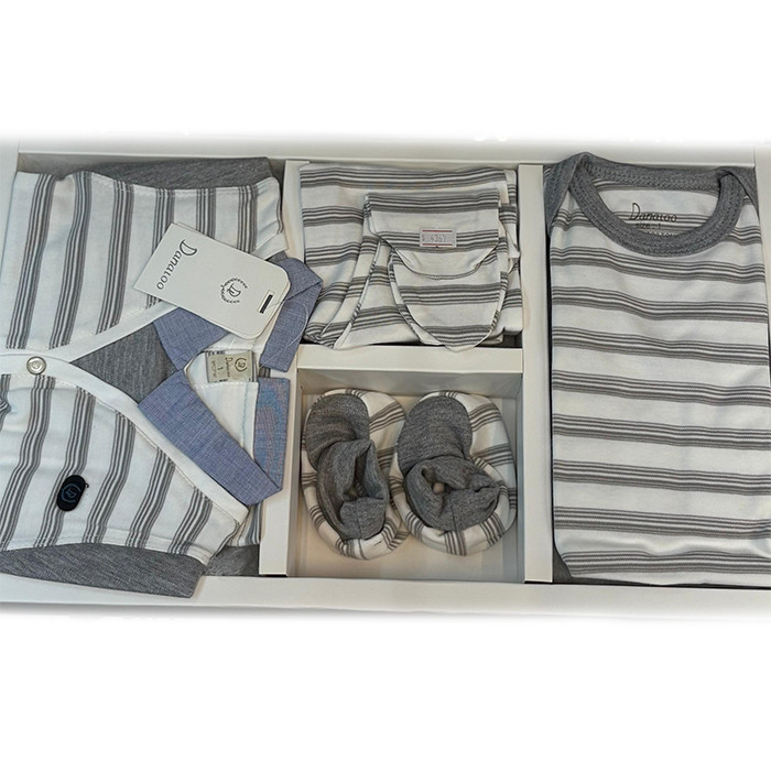 محتویات بسته: بلوز مانتویی آستین بلند/ بادی آستین کوتاه زیر دکمه/شلوار کمرکش /پیشبند/کلاه/دستکش/پاپوش مجلسی