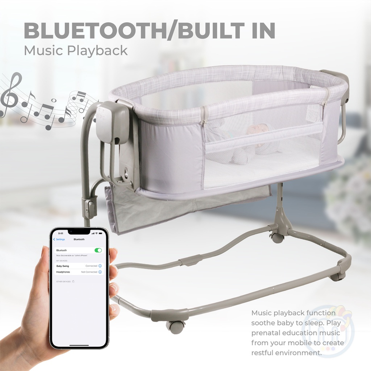 یک پشهبند برای حفاظت از آسیب رساندن حشرات یا حیوانات خانگی به همراه پنل موزیکال میتوانند در کنار حرکت گهوارهای و گردش هوا از پنجرههای مشبک، آرامش خواب بچهها را کامل کنند. علاوه بر ۱۵ ملودی تعبیه شده در پنل موزیکال، امکان اتصال USB یا بلوتوث برای پخش ملودیهای دلخواه والدین و نوزاد نیز وجود دارد.