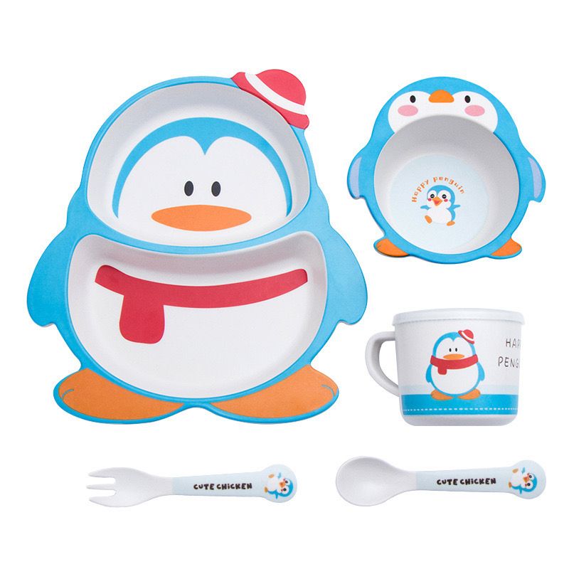 ست ظرف غذا بامبو 5 تکه کودک طرح پنگوئن
