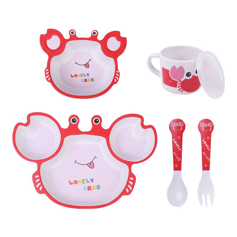 ست ظرف غذا بامبو 5 تکه کودک طرح خرچنگ
