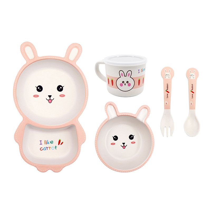 ست ظرف غذا بامبو 5 تکه کودک طرح خرگوش