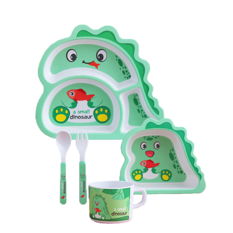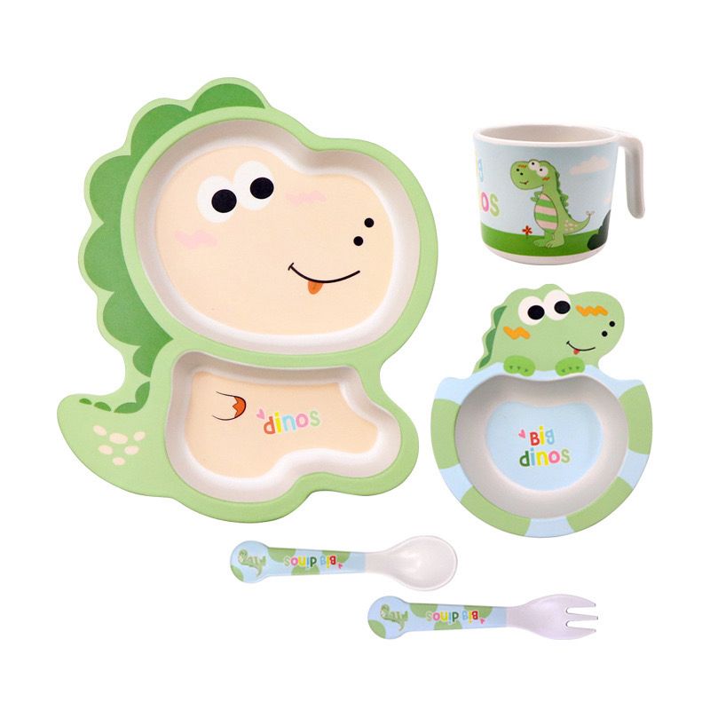 ست ظرف غذا بامبو 5 تکه کودک طرح دایناسور سبز