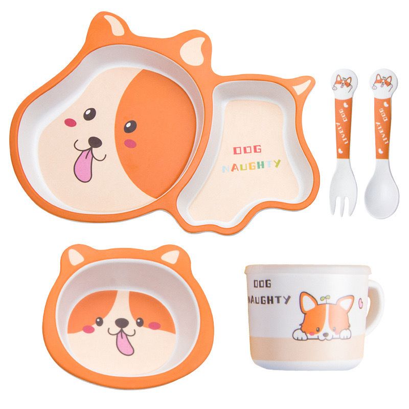 ست ظرف غذا بامبو 5 تکه کودک طرح سگ